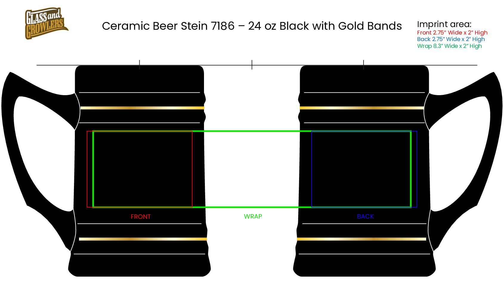 Ceramic Beer Stein 7186 – 24 oz Black with Gold Bands