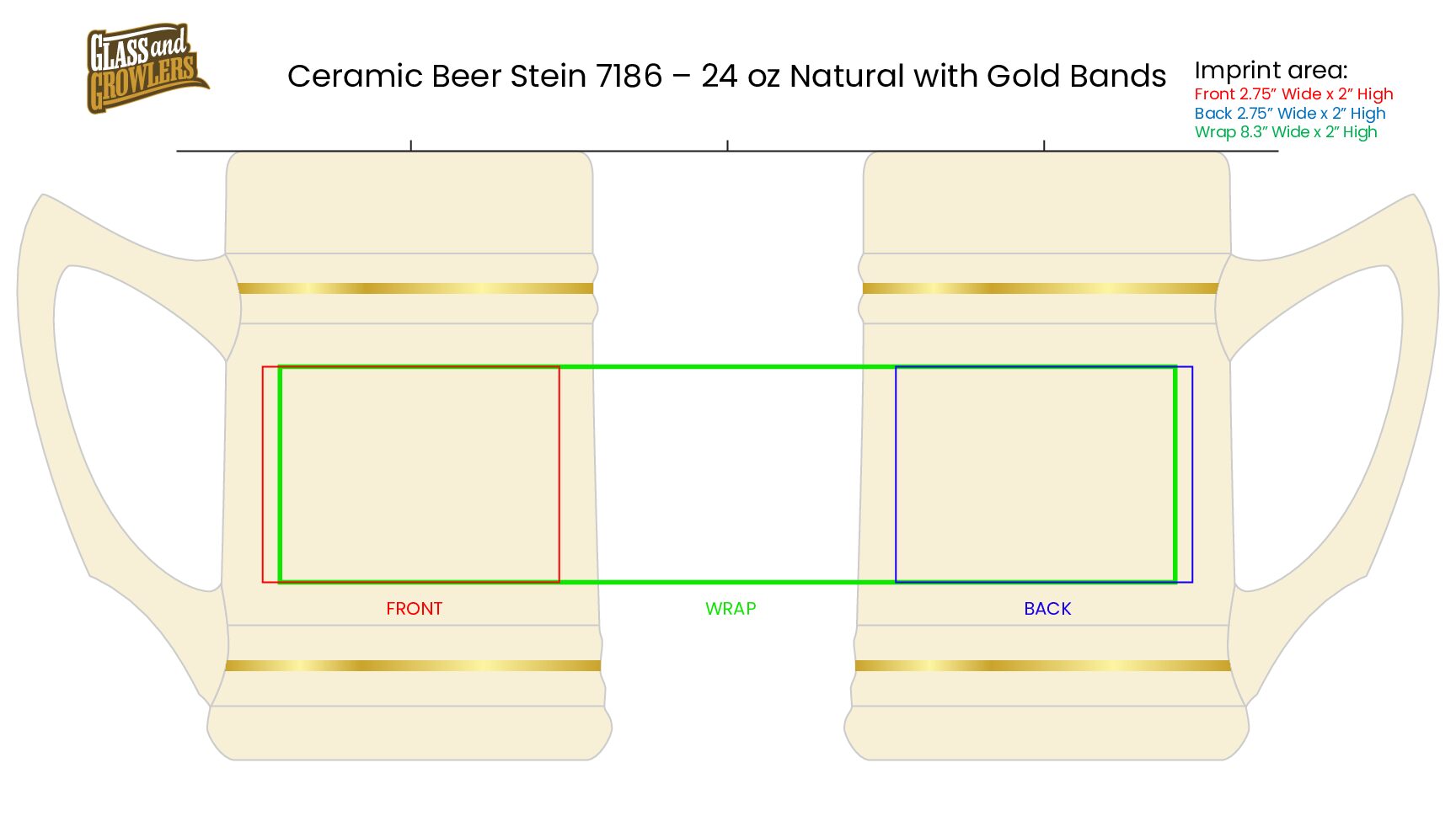 Ceramic Beer Stein 7186 – 24 oz Natural with Gold Bands