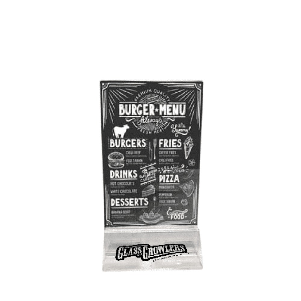 Introducing our economical table tents, designed for maximum visibility and customization. These table tents feature a clear base that allows for full-color printing on both sides, providing ample space for your messaging or branding. With a convenient top-loading insert, these table tents are easy to update and maintain. Measuring 4″ wide by 6″ high, they are the perfect size for showcasing promotions, specials, or important information on tabletops in restaurants, cafes, bars, and more. Stand out and make an impression with these versatile and cost-effective table tents.